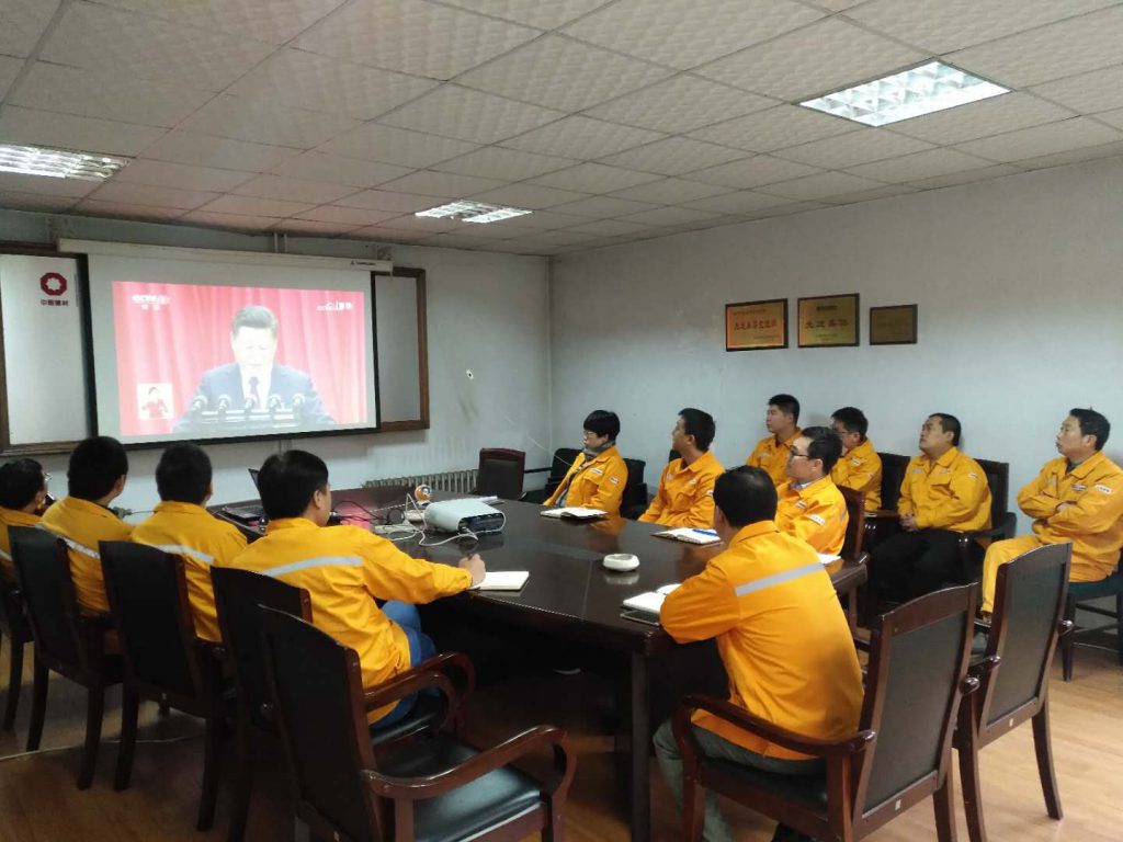 十九大是黨在全面建成小康社會決勝階段、中國特色社會主義發(fā)展關(guān)鍵時期召開的一次十分重要的大會,是全黨全國各族人民政治生活中的一件大事。在10月18日黨的十九大開幕會期間,為第一時間收看和學(xué)習(xí)好黨的十九大精神,中材國際(南京)采取多種組織方式,收看十九大開幕會盛況直播,聆聽習(xí)近平總書記代表第十八屆中央委員向大會作的報告。一是黨委理論學(xué)習(xí)中心組成員、公司主要領(lǐng)導(dǎo)沈軍、印志松及公司領(lǐng)導(dǎo)班子其他成員集體全程收看了十九大開幕會直播盛況;二是各子公司、公司各部門、項目部及各黨支部,也分別組織職工、黨員收看了開幕會,會后部分黨支部組織了熱烈討論;三是在公司大屏幕同步播放十九大開幕會、在局域網(wǎng)開通十九大CCTV直播鏈接和學(xué)習(xí)貫徹十九大精神專題網(wǎng)頁,強化學(xué)習(xí)宣傳;四是同時在大屏幕、局域網(wǎng)分別播放熱烈慶祝十九大勝利召開的宣傳圖片、五年來成就展等,營造喜慶、熱烈的氛圍。