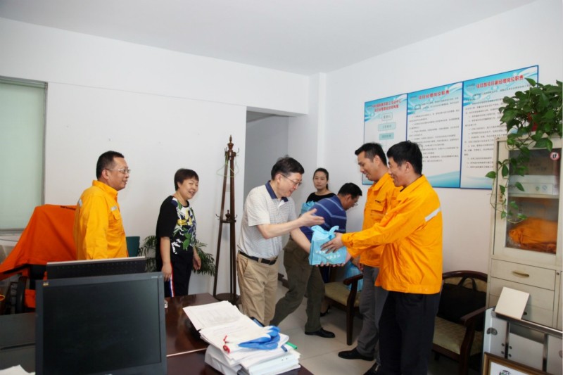 從7月份入伏以來,38℃左右的高溫天氣已持續(xù)數(shù)日,公司高溫崗位的職工不受高溫影響,堅守崗位,以飽滿的工作熱情保證了工作的正常開展。食堂師傅們在炒鍋前忍受著50~60℃的高溫,保質(zhì)保量地做好每一道菜;司機班在高溫的天氣滿足出車需求;公司項目部的干部員工頂著烈日,深入工地檢查每一道工序,確保施工質(zhì)量和進度;物業(yè)公司人員戰(zhàn)高溫認真做好園區(qū)安保等工作,針對大家的辛勤工作,公司工會及時組織了高溫慰問。8月9日,公司副總經(jīng)理、工會主席趙美江,工會副主席祝建成來到公司食堂操作間、司機班、項目部以及物業(yè)公司,為大家送去了防暑降溫慰問品。